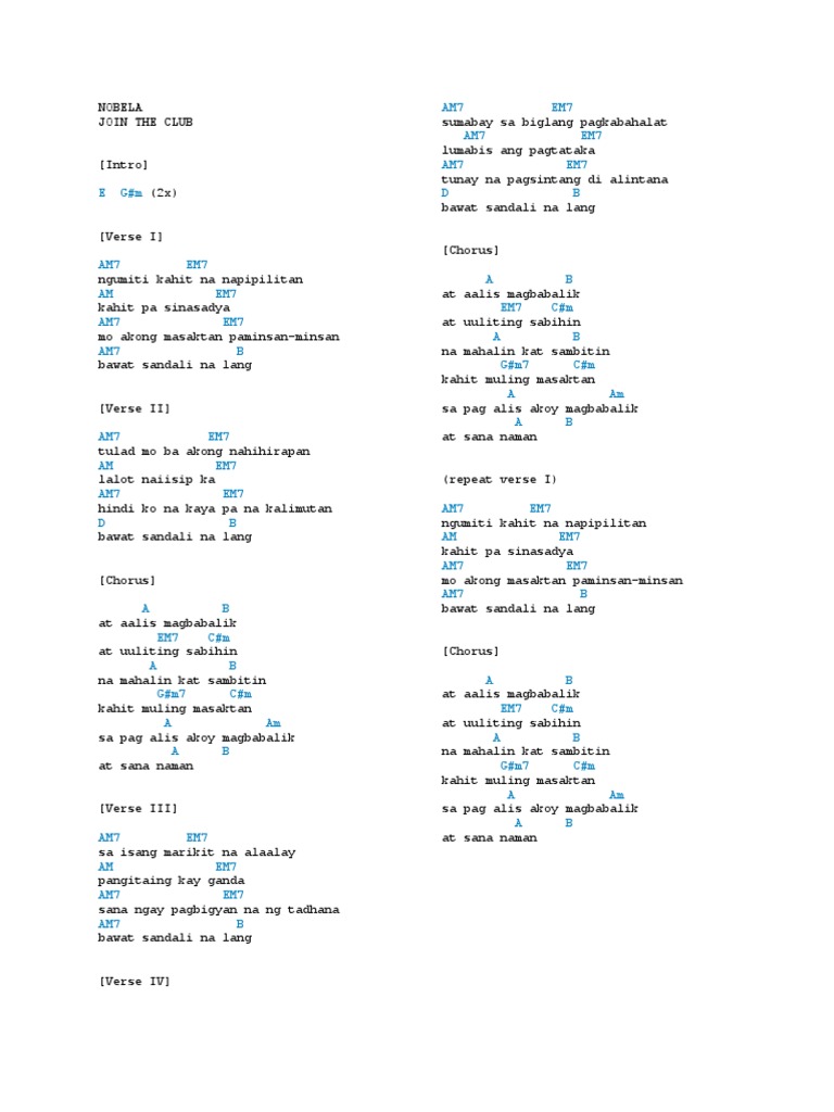 Nobela Ukulele Chords : Nobela (debut album) join the club tabbed by: