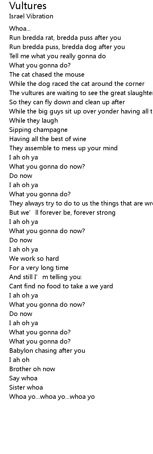 Vultures Lyrics Follow Lyrics Israel vibration is a reggae harmony trio, originating from kingston, jamaica.